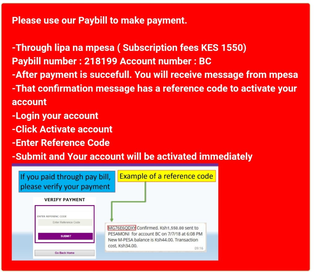 2. Pay a subscription fee of Kshs. 1550 to activate your account.